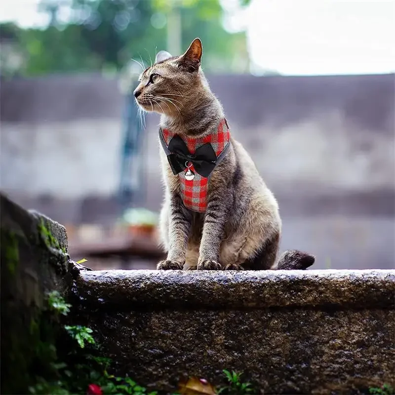 Give your furry friend secure, comfortable adventures with this Nylon Cat Harness Adjustable Pet Harnesses Leash Set with Mesh Breathable Bowknot Bell.
