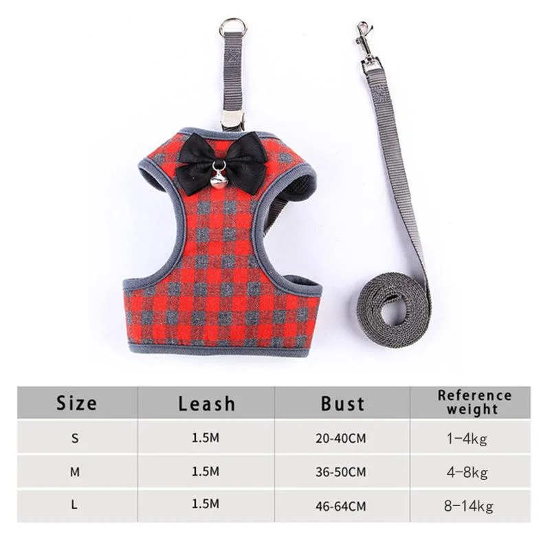 - Design: Vest-style harness with adjustable straps, bowknot decoration, small bell, plus included leash; escape-resistant and easy to put on